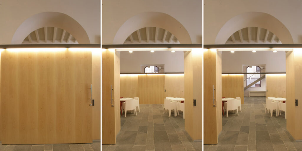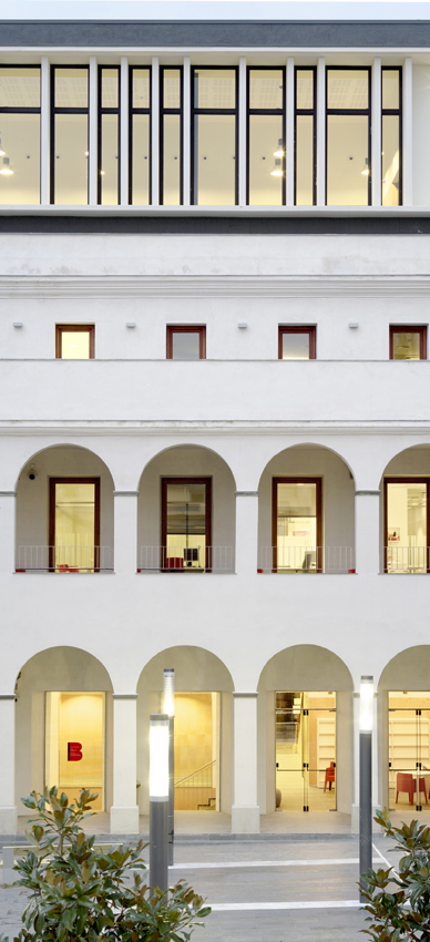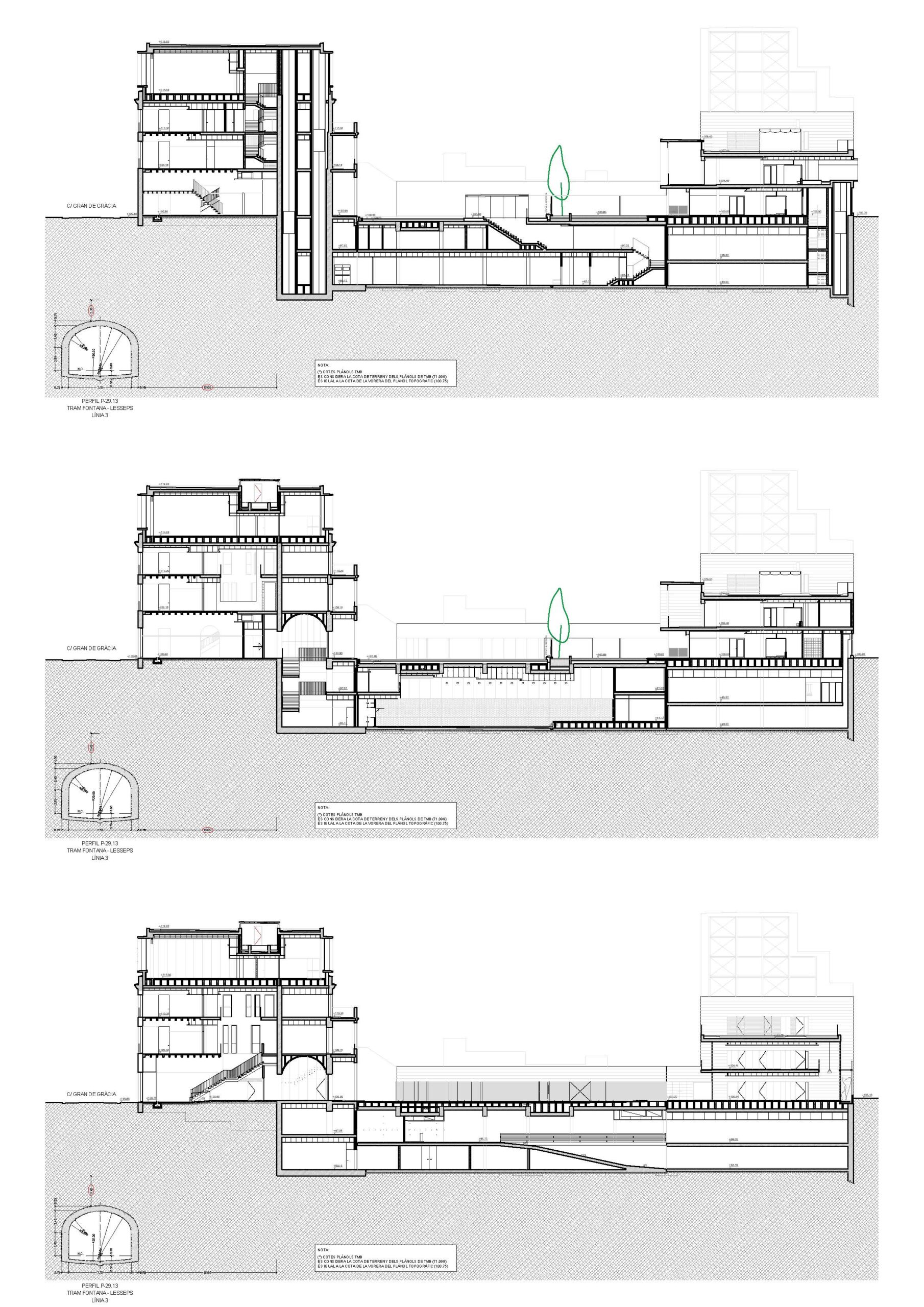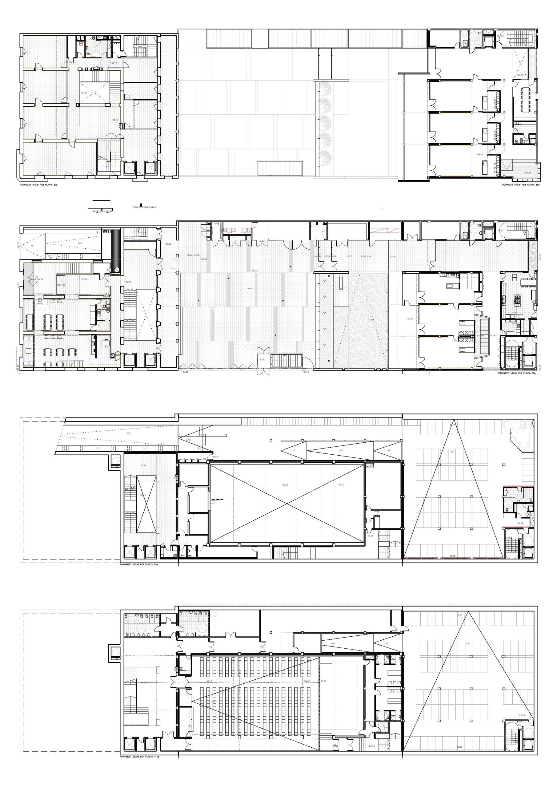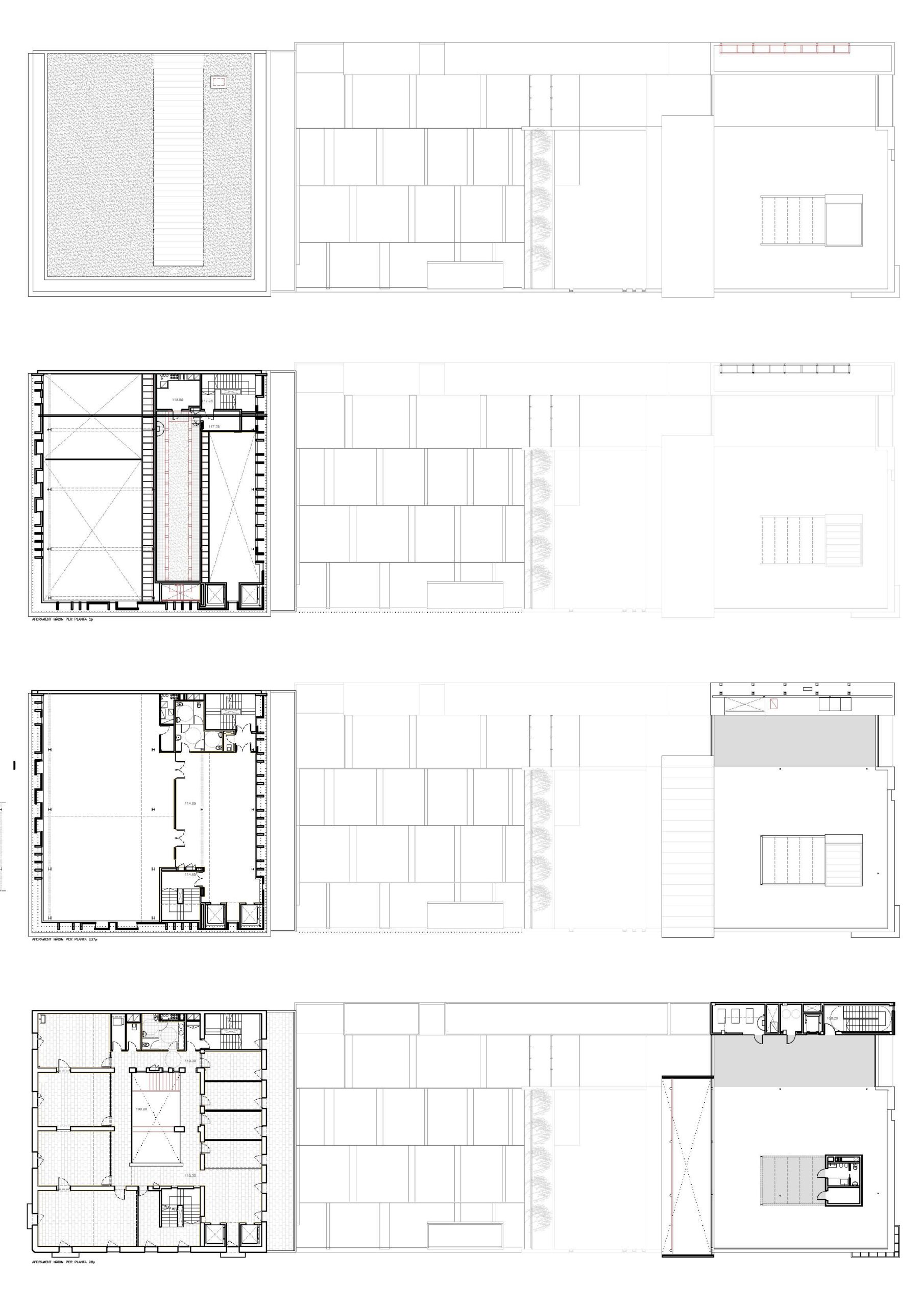El projecte planteja la rehabilitació de l’edifici mantenint com a elements distributius les parets de càrrega existents i fent-les servir com a noves parets de càrrega dels nous forjats de l’edifici.